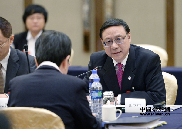 海協(xié)會、臺灣海基會領導人第十一次會談預備性磋商20日下午在福州市舉行。海協(xié)會常務副會長鄭立中與海基會副董事長兼秘書長施惠芬主持磋商并分別致辭。(中國臺灣網 何建峰 攝)
