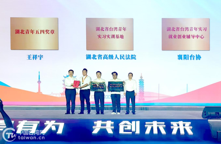 現(xiàn)場(chǎng)舉行頒授儀式,為王祥宇頒授“湖北省五四青年獎(jiǎng)?wù)隆�,為湖北省高�?jí)人民法院及襄陽(yáng)臺(tái)協(xié)分別頒授“湖北省臺(tái)灣青年實(shí)習(xí)實(shí)訓(xùn)基地”“湖北省臺(tái)灣青年實(shí)習(xí)就業(yè)輔導(dǎo)中心”牌匾。