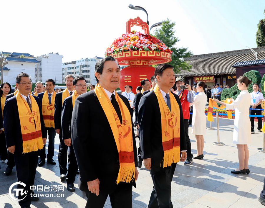 馬英九同宋濤進(jìn)入伏羲廟,拜謁祖廟,敬獻(xiàn)花籃,寄托追思與尊崇之情。(中國臺(tái)灣網(wǎng)記者 尹賽楠 攝)